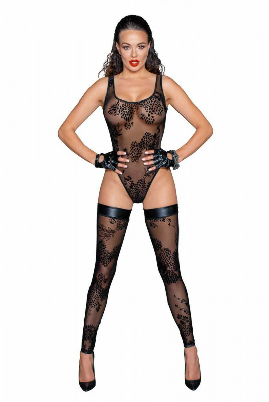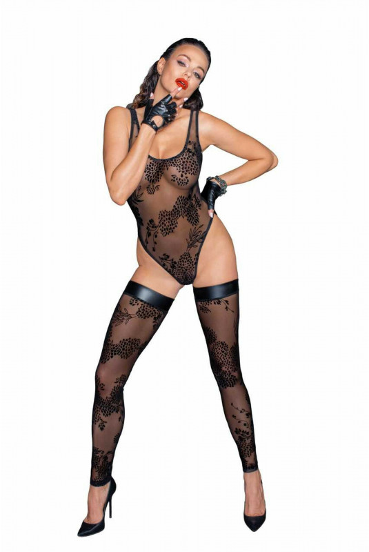 Offrez-vous des moments intenses de sensualité avec cet exceptionnel body sexy en tulle transparent floqué d'arabesques de fleurs, spécialement coupé pour mettre votre corps en valeur.
