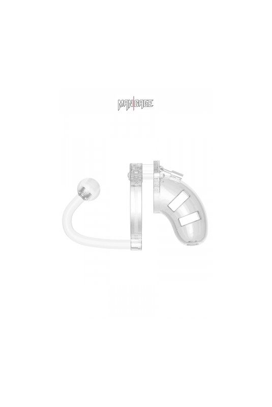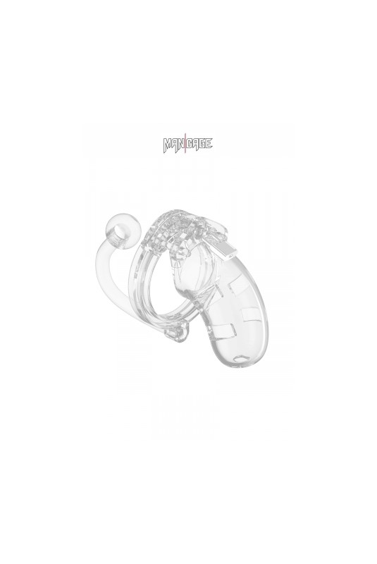 La marque ManCage, spécialiste des cages de chasteté masculine, présente son modèle ManCage n°10, une cage de chasteté transparente haute qualité de 9 cm de long avec un plug anal intégré amovible permettant d'ajouter de nouvelles sensations.