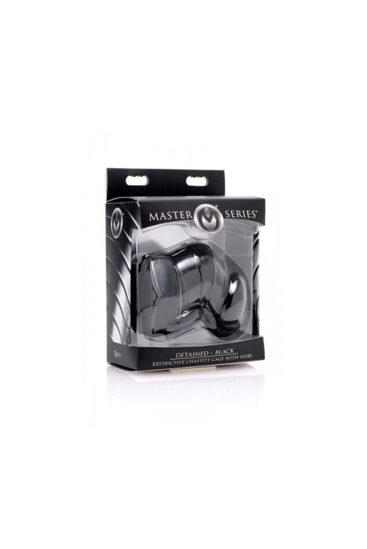 Intégralement fabriquée en caoutchouc TPR, la cage de chasteté "Detained Black Restrictive Chastity Cage with Nubs" est la meilleure solution pour expérimenter l'emprisonnement du pénis et empêcher la moindre érection au quotidien tout en conservant un minimum de confort et un maximum de discrétion. Parallèlement, de petits reliefs tapissent lintérieur de la cage et taquinent le sexe de votre soumis alors que celui-ci est encagé.