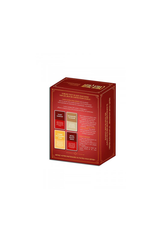 Oubliez tout ce que vous pensez savoir des jeux de couples ! Carta Sutra Challenges cest 220 cartes pour un an de gages fun, romantiques et pimentés. Bien plus quun jeu, cest une aventure de couple !
