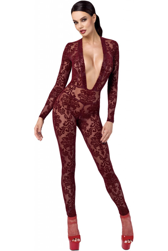 Design : Dotée d'un décolleté plongeant audacieux, la combinaison encadre magnifiquement le décolleté, tandis que ses manches longues et sa coupe longue créent une silhouette élégante et élancée. Une fermeture éclair discrète à l'entrejambe s'intègre parfaitement à la silhouette, alliant fonctionnalité et sensualité audacieuse.