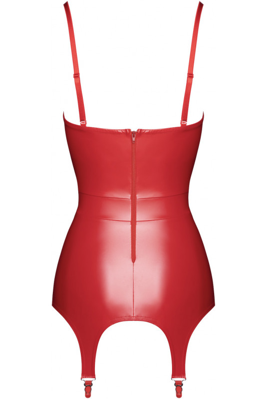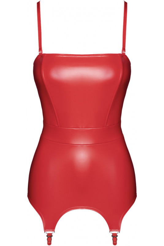 Matière : Confectionnée en tissu Powerwetlook rouge, cette pièce hybride corset-jarretelles offre une coupe près du corps qui s'adapte à votre silhouette. Sa matière extensible assure confort et sculpte la silhouette.
