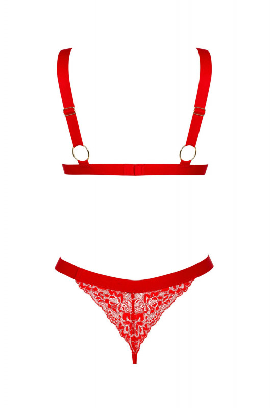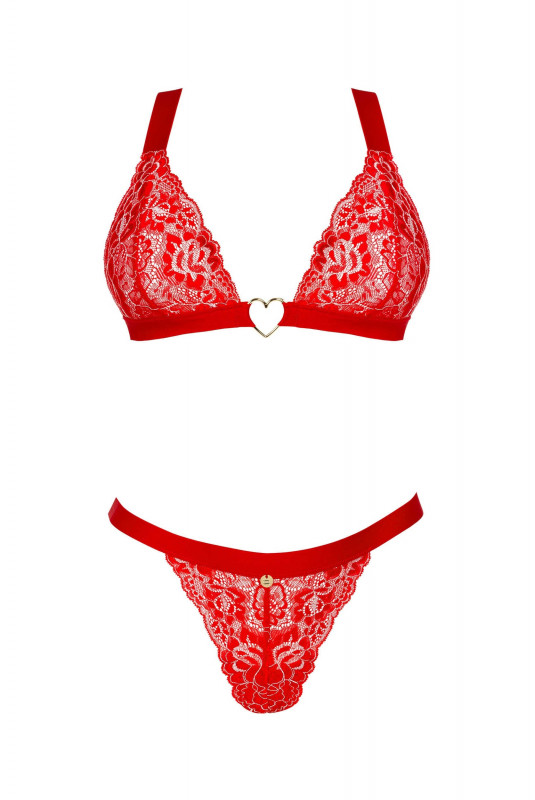 Laissez-vous charmer par cette lingerie rouge string et soutien-gorge.