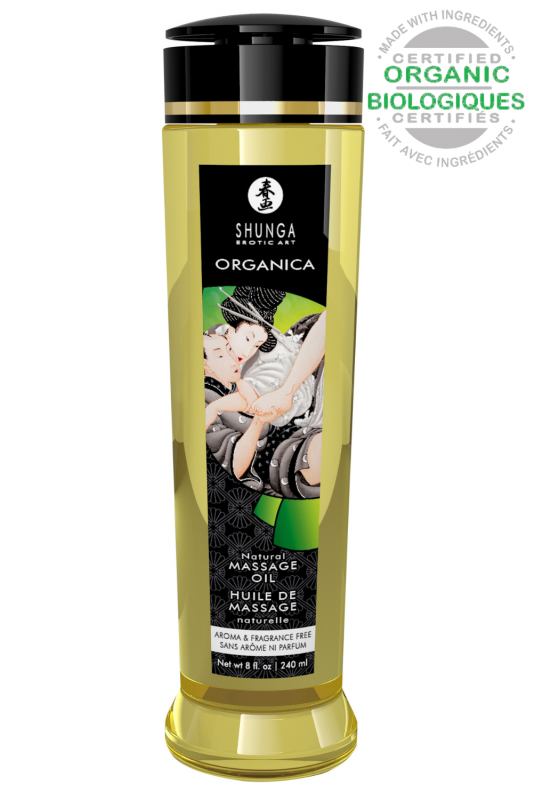 Découvrez la pureté d’une huile de massage 100 % biologique et sans parfum avec la gamme Shunga Organica. Formulée à partir d’huiles végétales pressées à froid et raffinées tournesol, colza, pépin de raisin, avocat, sésame, elle offre une texture soyeuse qui glisse parfaitement sur la peau tout en respectant son équilibre naturel.