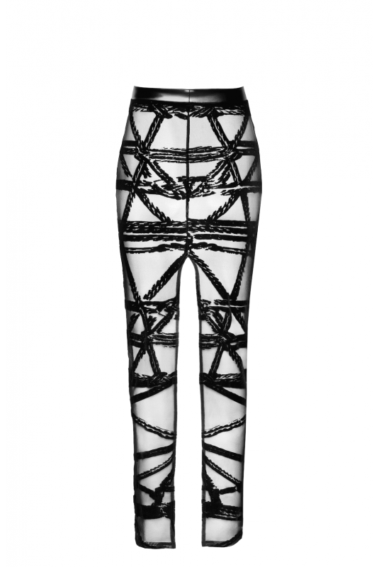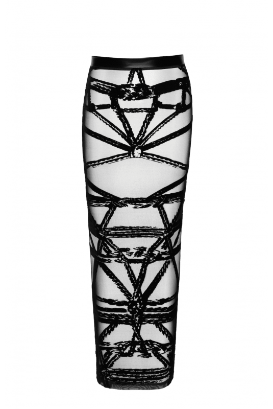 Matière : Confectionnée en tulle floqué semi-transparent au motif unique inspiré du bondage, cette jupe allie charme visuel et texture veloutée et luxueuse. Une ceinture douce Powerwetlook assure un ajustement sûr et confortable tout en créant un contraste élégant avec la délicatesse du tissu.