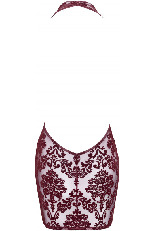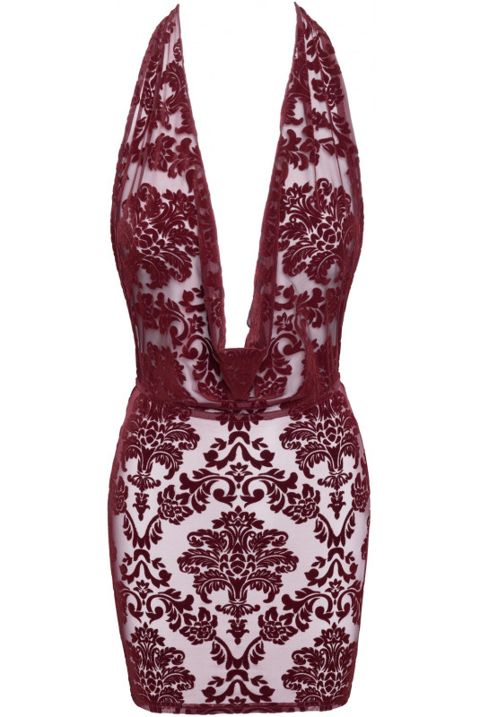 Faites sensation avec cette superbe robe courte confectionnée en luxueux tulle floqué bordeaux. Conçue pour allier audace et sophistication raffinée, elle est parfaite pour des soirées captivantes et inoubliables.