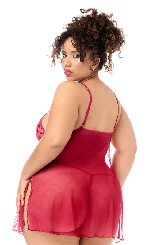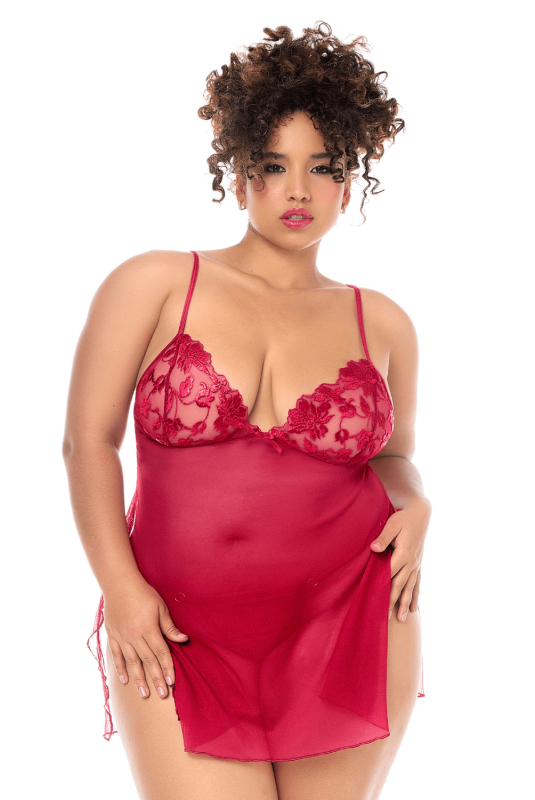 Mélange parfait de romantisme et de séduction, cette babydoll sexy grande taille signée Mapalé est conçue pour sublimer vos nuits. Ses bonnets brodés apportent une touche élégante et raffinée, tandis que sa jupe en résille transparente avec fentes latérales ornées de nœuds révèle la peau avec sensualité.