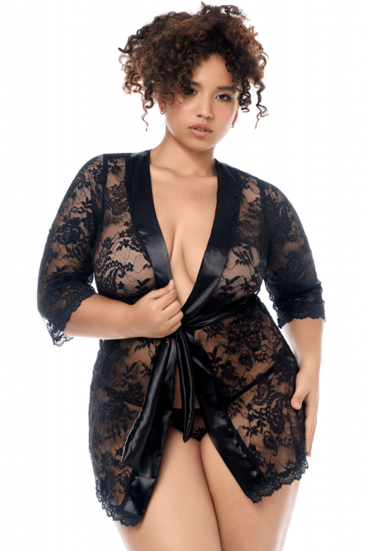 Un incontournable de toute collection de lingerie, ce peignoir en dentelle signé Mapalé allie élégance intemporelle et séduction raffinée. Confectionné dans une dentelle délicate, il est sublimé par de fines bordures en satin et un lien de taille réglable qui met en valeur la silhouette avec confort et style.