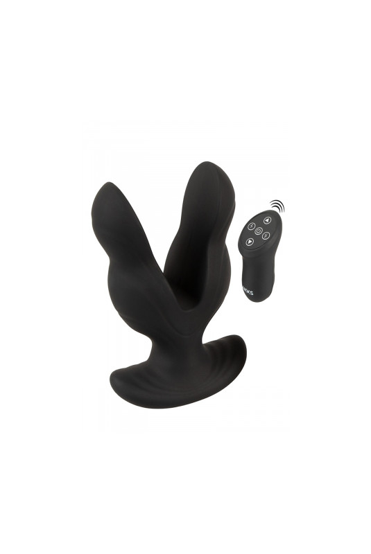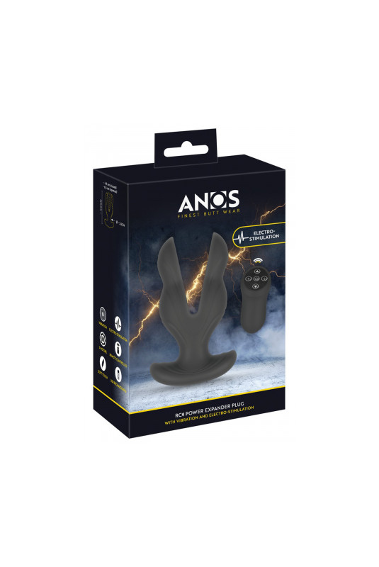 Le plug anal "RC Power Expander Plug" d'ANOS avec ses fonctions vibrantes et d'électro-stimulation procure un étirement parfait et une stimulation anale intense. Le plug s'introduit avec ses 2 extrémités refermées et se déploie ensuite dans le canal anal sur toute sa largeur. De plus, ses 2 moteurs puissants assurent de manière fiable une diversité excitante d'E-Stim et de Vibrations.