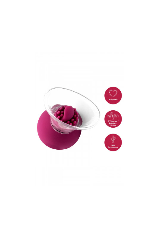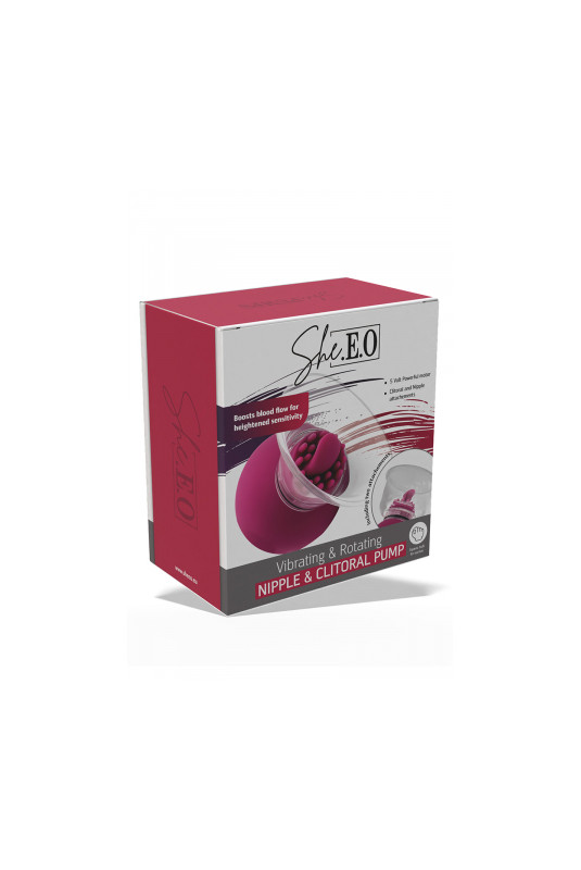 Découvrez le plaisir ultime avec la pompe à clitoris et tétons rotative et vibrante She.E.O. Ce sextoy est doté de deux ventouses amovibles pour une stimulation ciblée.