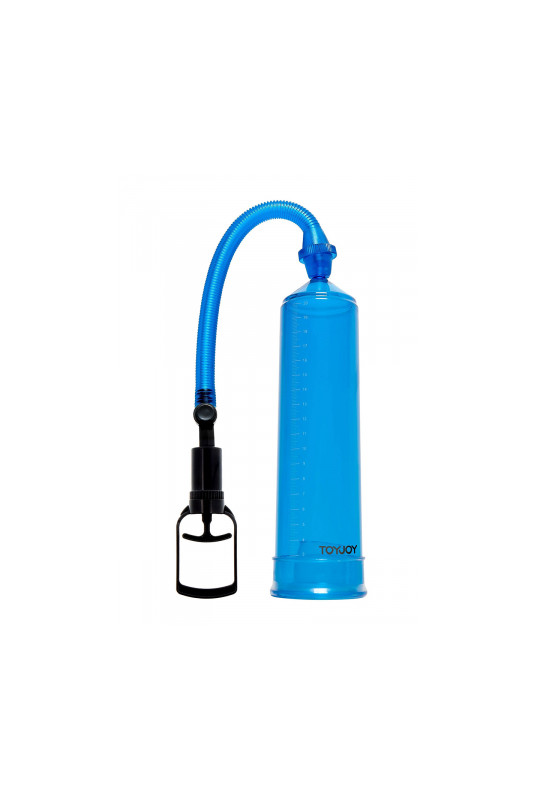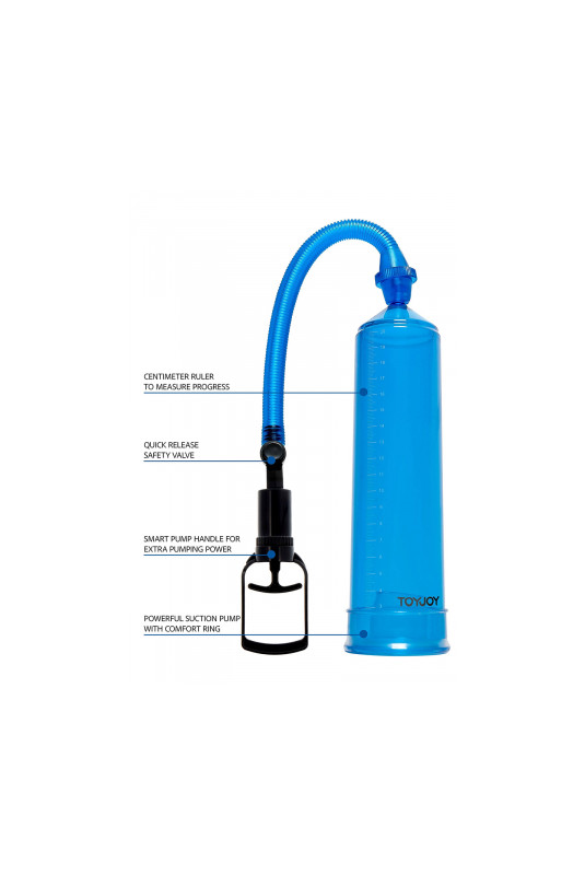 Améliorez la taille de votre pénis en toute simplicité avec le développeur de pénis ToyJoy Power Pump bleu.