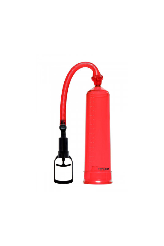 Améliorez la taille de votre pénis en toute simplicité avec le développeur de pénis ToyJoy Power Pump rouge.