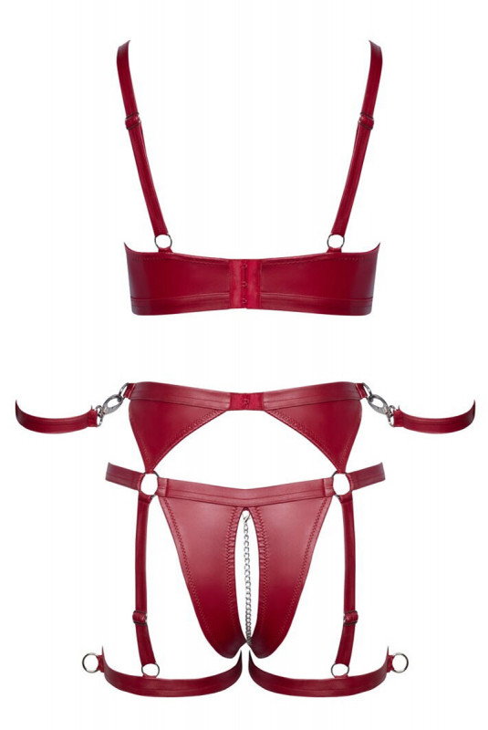 - Ensemble lingerie bondage avec soutien-gorge et slip à jarretelles ouvert