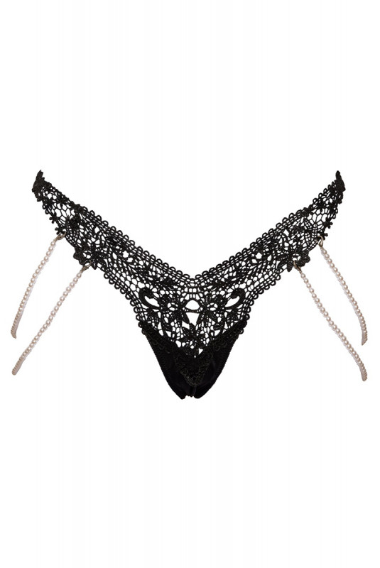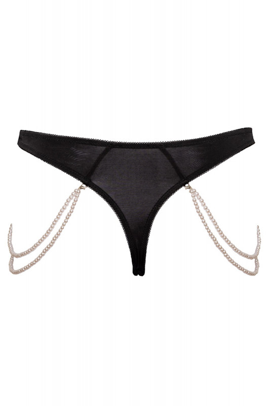 Sur les côtés, deux chaînes élastiques ornées de perles apportent une touche bijou subtile et sensuelle.