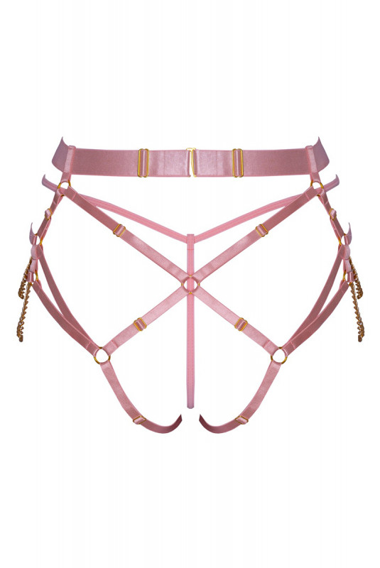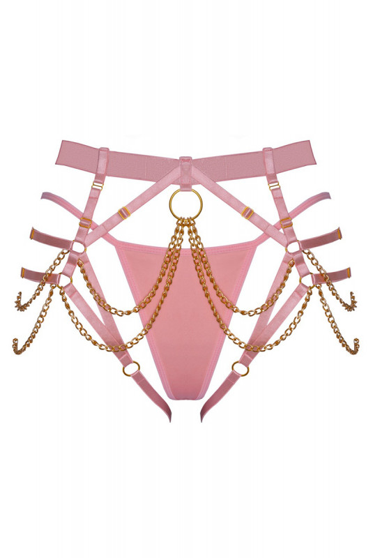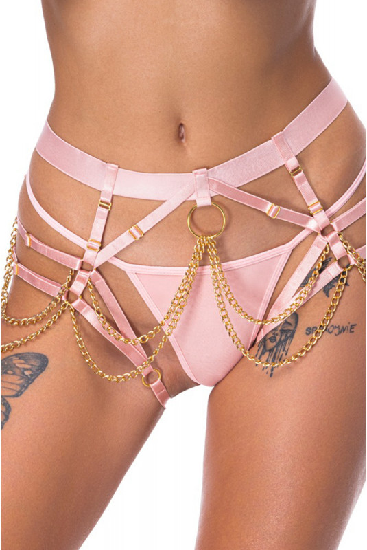 Lensemble string harnais rose de Bad Kitty se compose de deux pièces complémentaires, pensées pour créer un style bondage affirmé et séduisant.