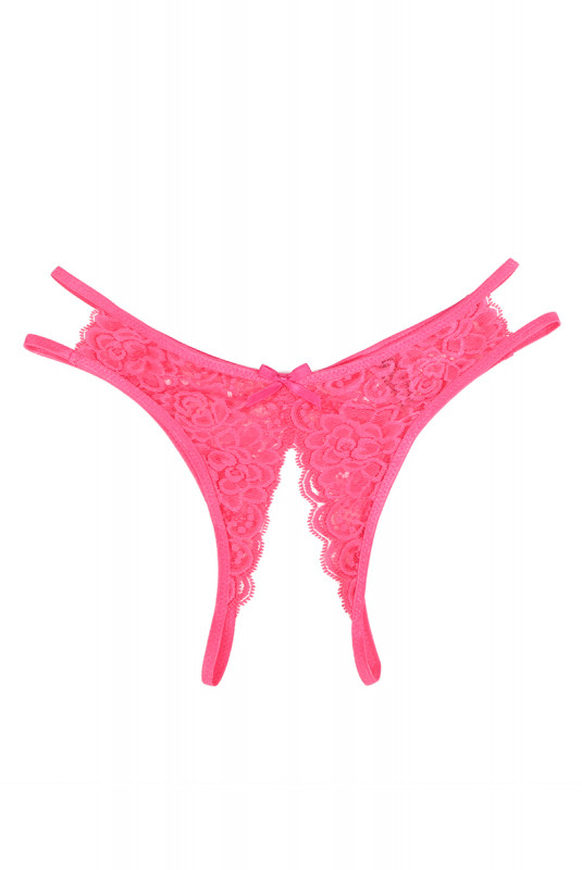 String ouvert en dentelle résille rose, pensé pour sublimer les courbes avec légèreté et sensualité.
