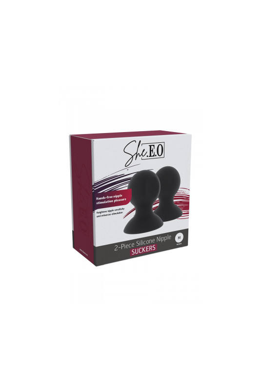 Suceurs de mamelons en silicone She.E.O taille M, conçus pour offrir une stimulation douce, confortable et entièrement mains libres.