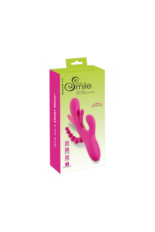 Le "Triple Vibe With Flicking Tongue" de Sweet Smile et sa langue oscillante intégrée, stimule en même temps le vagin, le point G, le clitoris et la région anale.