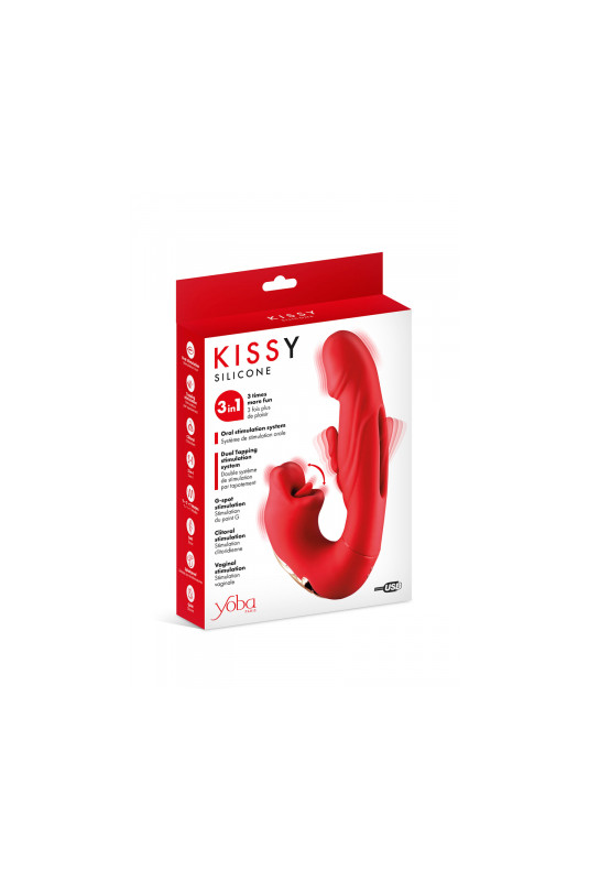 Le vibromasseur rabbit Kissy rouge en silicone premium hypoallergénique haut de gamme est conçu pour offrir une stimulation intense et agréable du vagin et du clitoris. Avec ses 7 modes de vibrations, de tapotements et de succions, il offre une expérience personnalisable et variée.