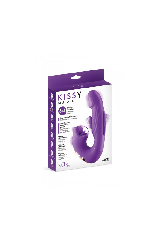 Le vibromasseur rabbit Kissy violet en silicone premium hypoallergénique haut de gamme est conçu pour offrir une stimulation intense et agréable du vagin et du clitoris. Avec ses 7 modes de vibrations, de tapotements et de succions, il offre une expérience personnalisable et variée.