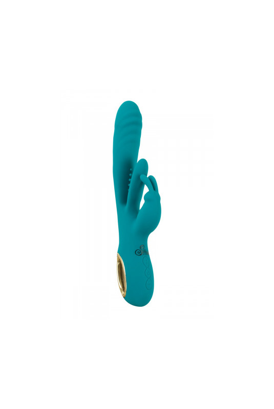 Ce puissant vibromasseur Rabbit offre plusieurs fonction simultanées (ou indépendantes) spécialement créées pour vous faire fondre de plaisir. La fonction "Thrust" produit de puissants mouvements de va-et-vient dans le vagin tandis que la fonction "Flicking Tongue" (langue oscillante) agit précisément sur le point G en tapotant les parois vaginales. Enfin, le stimulateur Bunny flexible vibre à l'extérieur de manière ciblée sur le clitoris. Le tout fonctionne grâce à Trois moteurs silencieux mais puissants qui garantissent les performances du sextoy.