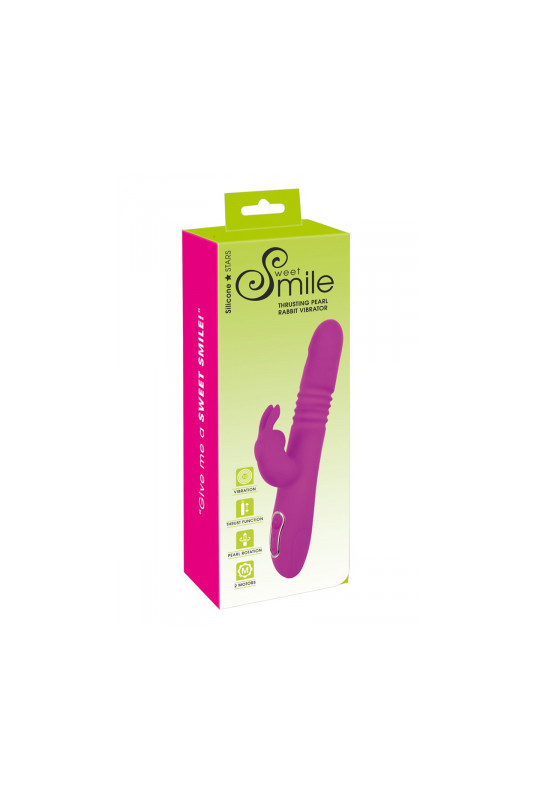 Le vibromasseur Thrusting Pearl Rabbit de Sweet Smile est un vibromasseur puissant avec un vibromasseur clitoridien flexible et des boules rotatives dans le corps du vibromasseur pour un plaisir complet jusqu'au point G, avec effet orgasmique.