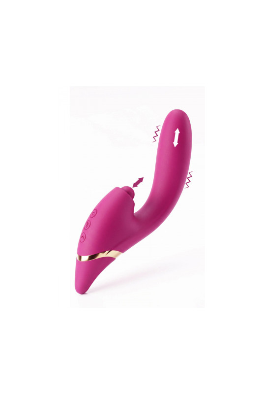 Ce vibromasseur sophistiqué est équipé de trois moteurs puissants. Son corps offre 10 modes de vibration et 7 modes de va-et-vient (thrusting) pour une sensation d'insertion profonde et intense. En complément, son stimulateur clitoridien externe propose 3 modes de pulsations rythmiques (tapping) pour une stimulation ciblée et rapide.